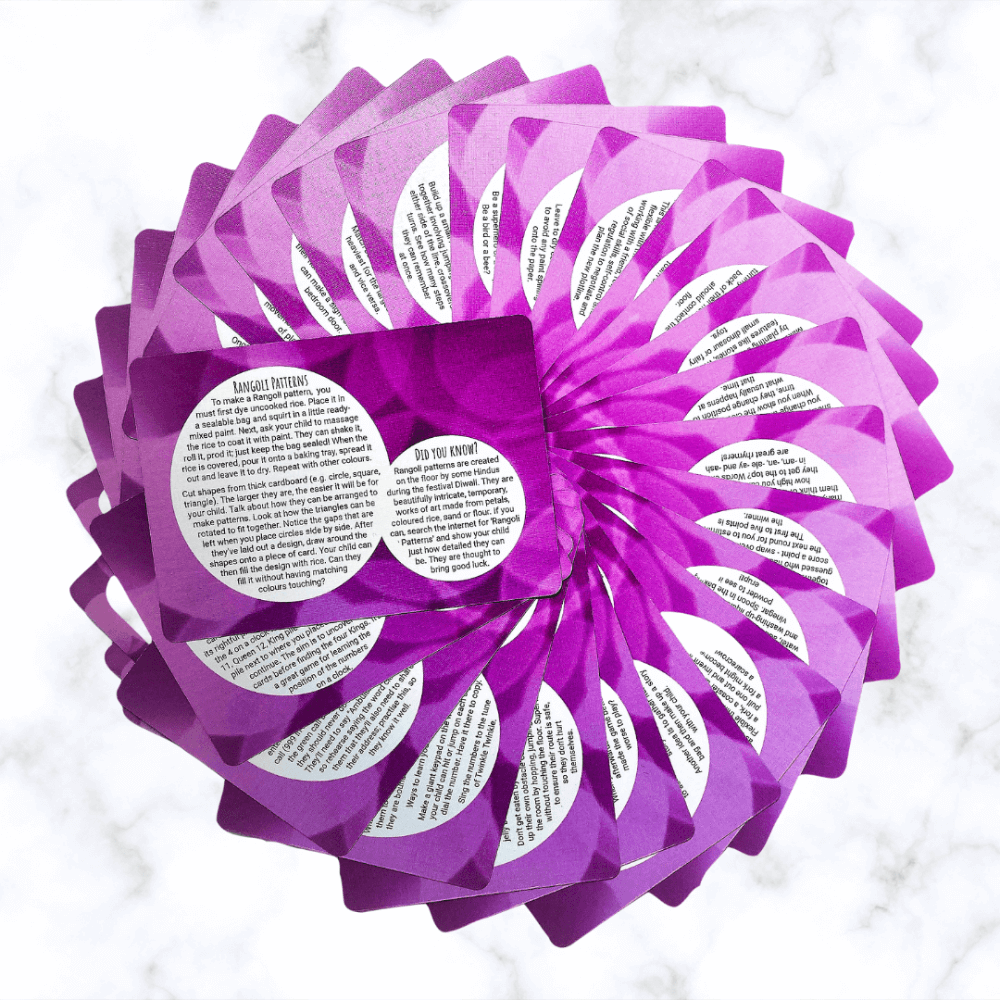As the packs before the pack contain double sided A6 size cards with coloured photos with fun activity ideas that have been carefully designed to match the developmental needs of young child. you will find the cards with have an egg timer symbol to give you an idea of how long the activity will take to prepare, There are even more activities per pack with an added bonus that some of the cards include QR codes to give you access to extra online content and printable resources to use with your child.